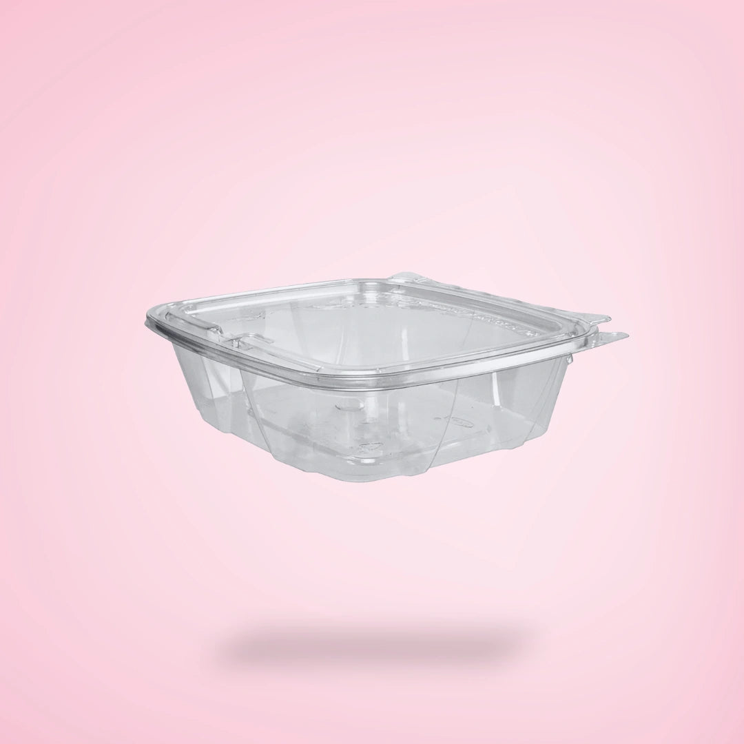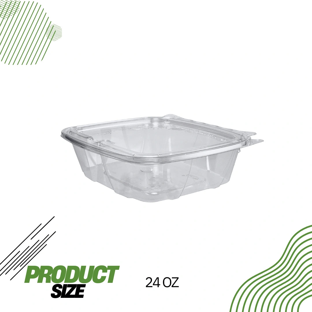 Recipiente transparente con bisagras y tapa plana a prueba de manipulaciones, 24 oz
