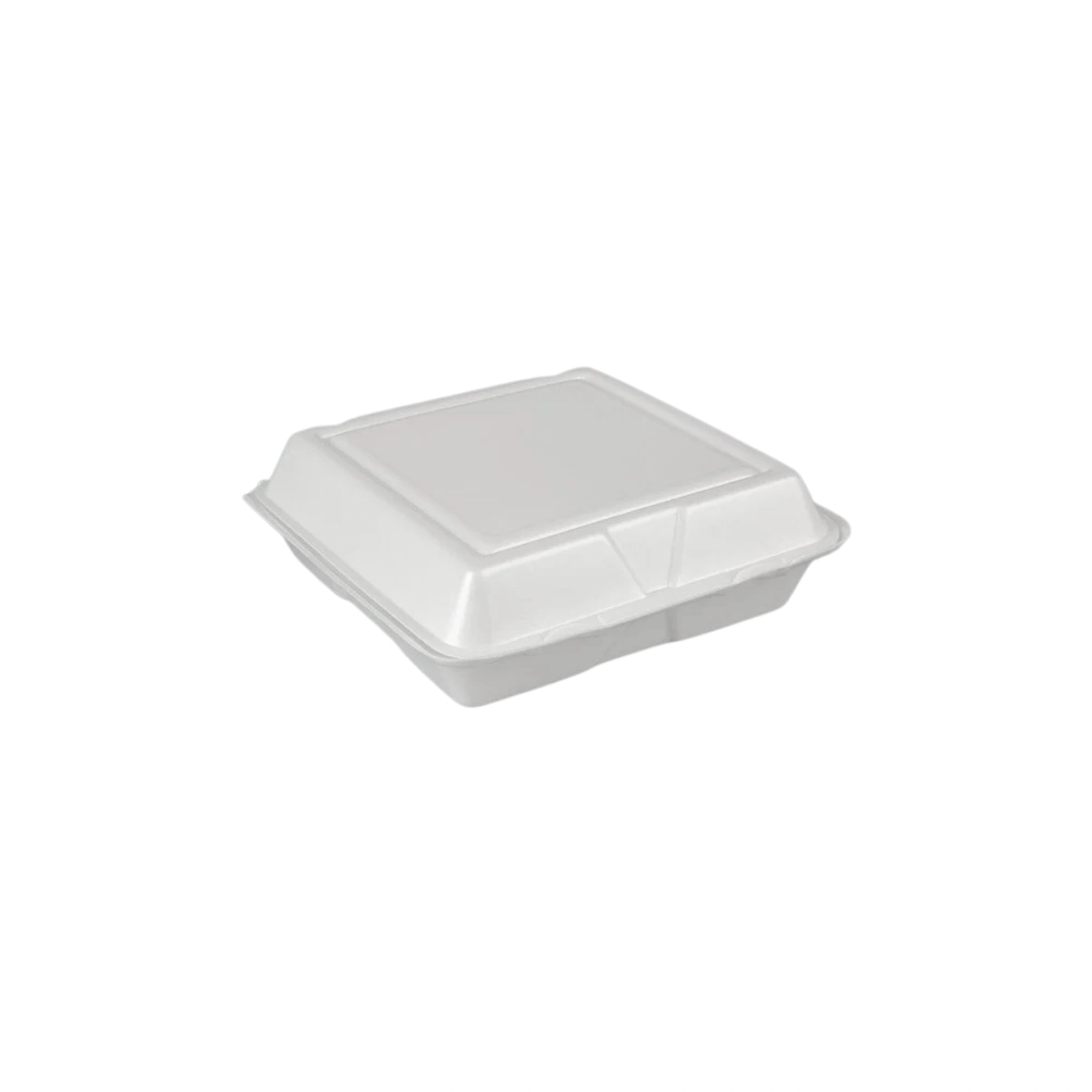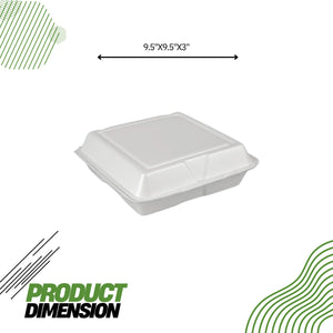 The Dart 95HT1R Foam Square Take Out Container provides superior insulation to keep food hot or cold. The hinged lid securely seals in freshness while the sturdy 9.5"x9.5" size accommodates most dishes. With its durable construction and convenient design, it's an ideal option for takeout or food storage.